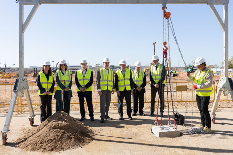 Barcelona, 17 de març de 2026.- L’alcalde de Barcelona, Jaume Collboni, acompanyat pel delegat del Govern a Catalunya, Carlos Prieto; el president executiu del Consorci de la Zona Franca de Barcelona (CZFB), Pere Navarro, i la directora general del CZFB, Blanca Sorigué, ha presidit aquest matí l’acte de col·locació de la primera pedra de l’ampliació del DFactory Barcelona, un projecte estratègic que permetrà triplicar la seva superfície i consolidar la capital catalana com un dels grans pols internacionals de la indústria 4.0.